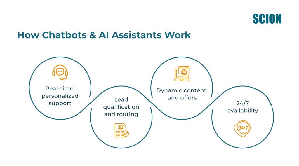 • Lead qualification and routing: Chatbots can capture important visitor information and qualify leads based on their responses. Instead of relying on generic forms, chatbots engage users conversationally, which often results in higher completion rates and better-quality leads.